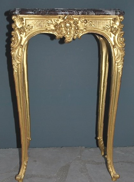 En bois sculpté et doré à décor de coquilles et de feuilles d'acanthe, marbre brèche violette, pieds cambrés