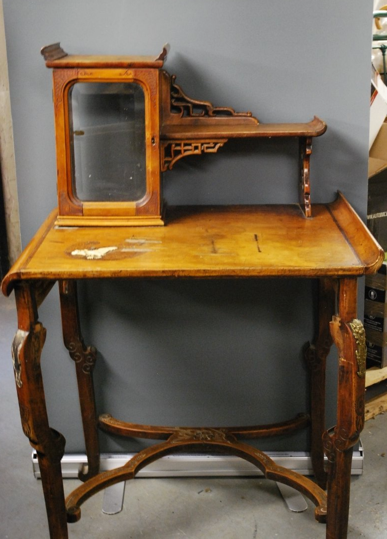 Table écritoire avec tiroir central et placage ivoire/ nacre.